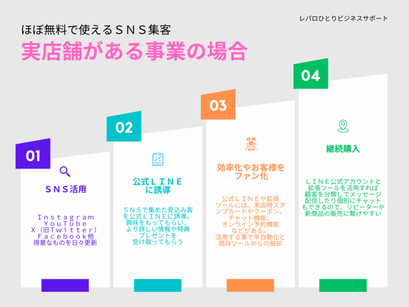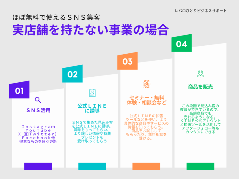 SNS集客とは、Instagram、Youtube等にこまめに投稿して、そこから自分の公式LINEに誘導して商品を買ってもらう仕組みです。
