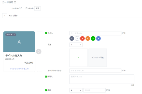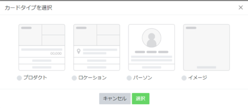カードの内容の設定画面が表示されます。今回は一番よく使われる「プロダクト」を選択してカードイタイプメッセージを作っていきます。