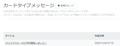 先ほど作ったカードタイプメッセージが正しく保存されていれば、カードタイプメッセージのページの中に表示されます。