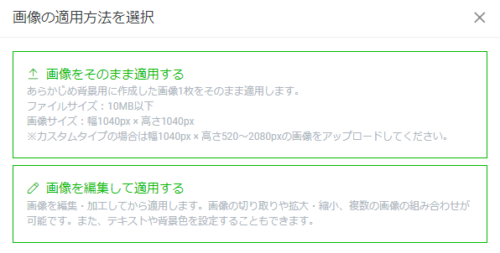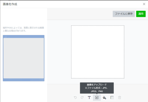 リッチメッセージの背景画像は、あらかじめ用意した画像をアップロードするか、設定時に作成します。