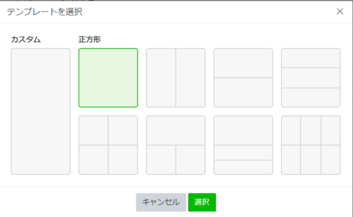 希望のデザインを選択し、「選択」ボタンを押します。不慣れはうちは、無難な正方形で仕切りのないテンプレートを選びましょう。