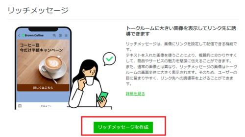 このような案内が出るので、「リッチメッセージを作成」をクリックします。